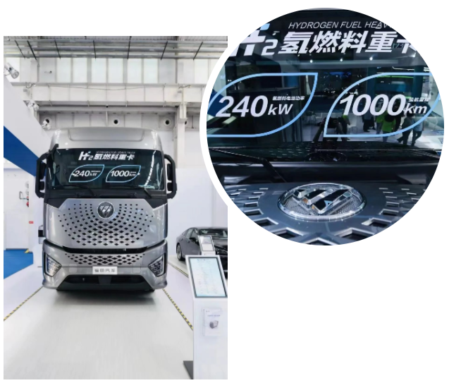 与亿华通联合打造的全球首款干线物流燃料电池重卡——福田49T氢燃料重卡